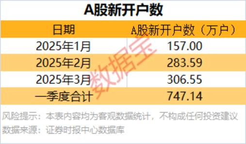 3月A股新开户数306.55万户,环比增长8.1%,一季度A股累计新开户数747.14万户。