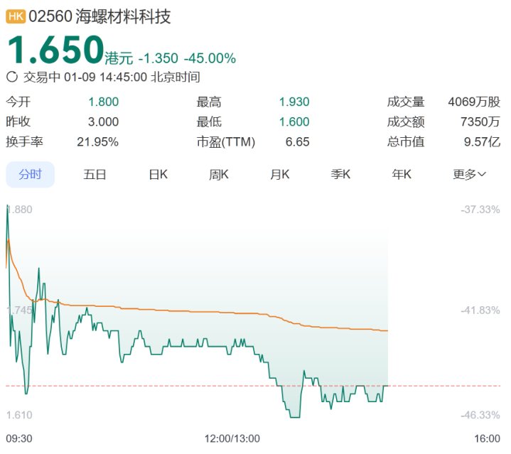 1月9日上午,港股海螺材料科技上市首日破发,截至发稿跌幅达45%,几近腰斩。