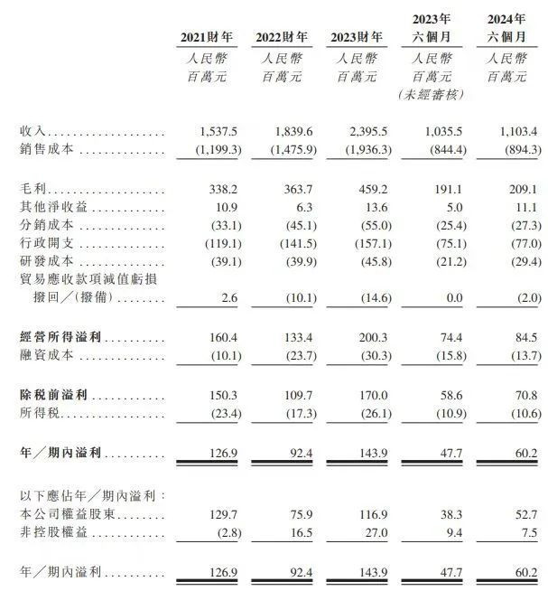 据招股书显示,财务方面,公司2021财年、2022财年、2023财年及2024年六个月,海螺材料科技实现收入分别约为15.38亿元、18.40亿元、23.96亿元及11.03亿元人民币。同期,年内溢利分别约为1.27亿元、9240万元、1.44亿元及6020万元人民币。