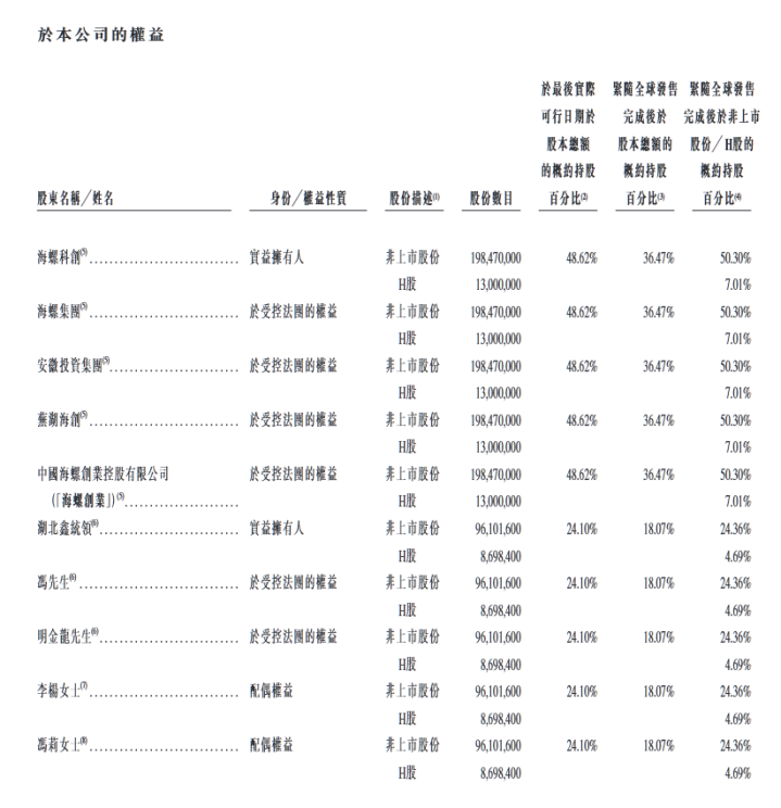 招股书显示,在海螺材料科技上市前,海螺科创直接持股比例达48.62%。向上股权穿透,海螺科创由安徽省国资委旗下安徽投资集团(以下简称“皖投集团”)、海螺创业(00586.HK)旗下芜湖海创实业分别持股51%、49%。